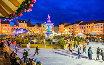 Českobudějovické adventní trhy se rozkládají na rozlehlém náměstí Přemysla Otakara II., které patří k největším v Evropě. Dominantou je velký vánoční strom a unikátní kluziště přímo uprostřed náměstí. Kolem něj se rozprostírají stánky s rukodělnými výrobky, vánočními ozdobami a regionálními specialitami.